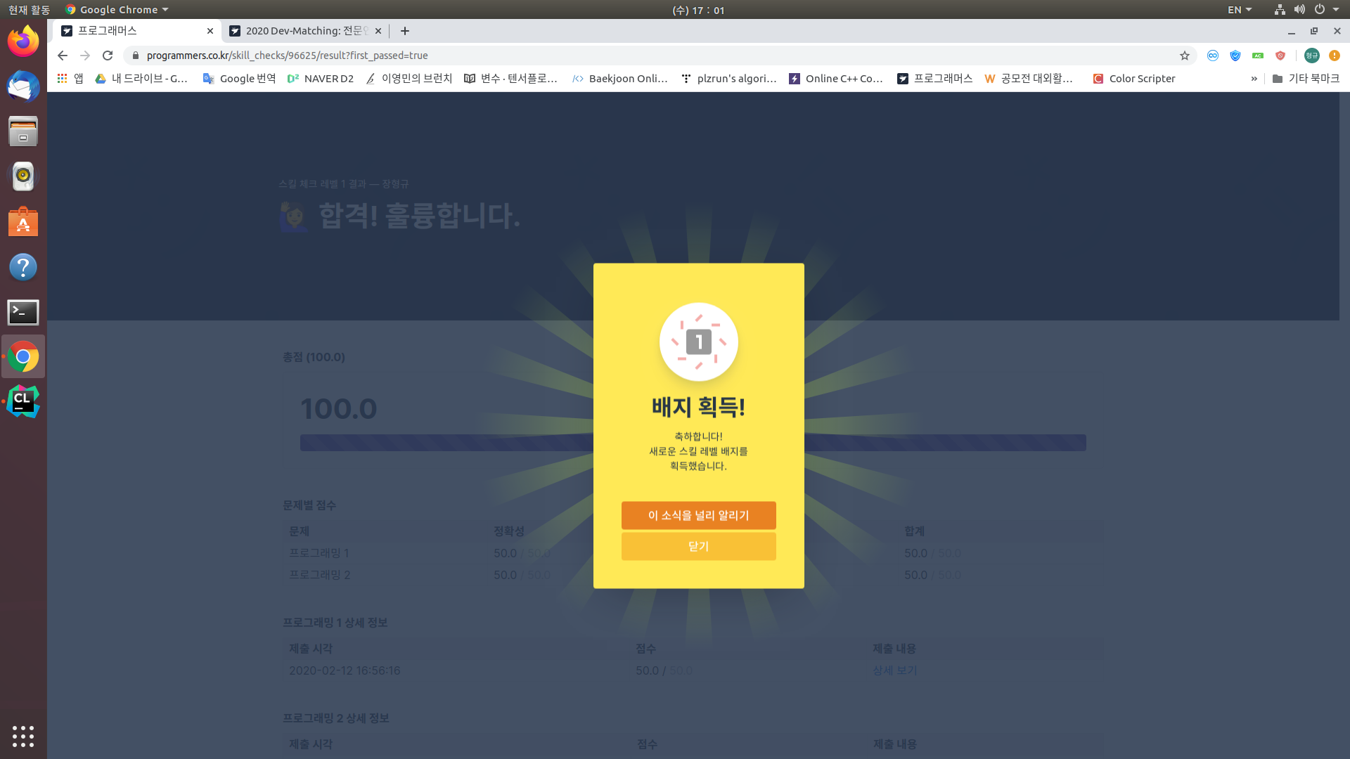 | 200305 프로그래머스 2단계 배지 획득! (0) | 2020.03.05 |