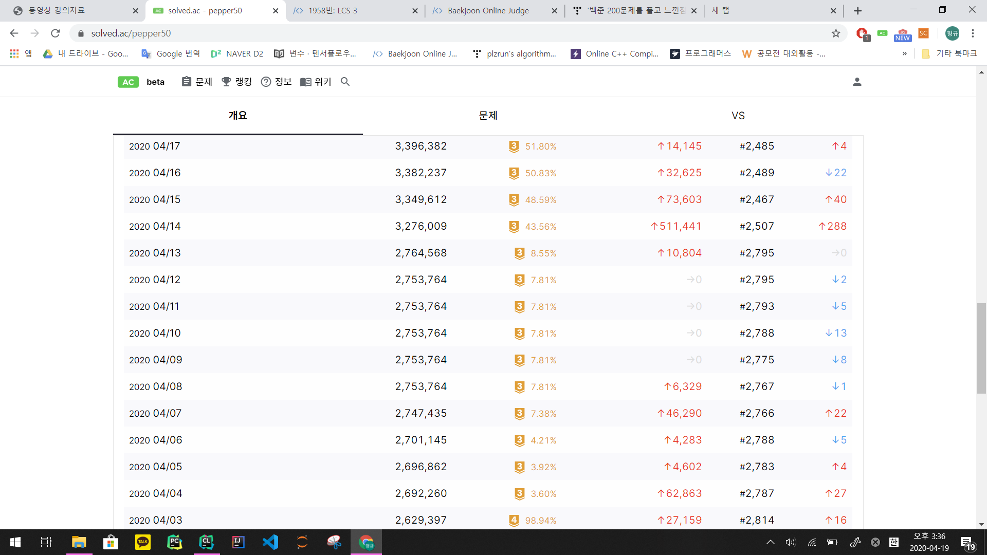 그래도 이제 다시 4월부터는 하루에 한문제씩이라도 풀기 위해서 짬을 내는 중이다. 알고리즘은 중요하니까.. 흑