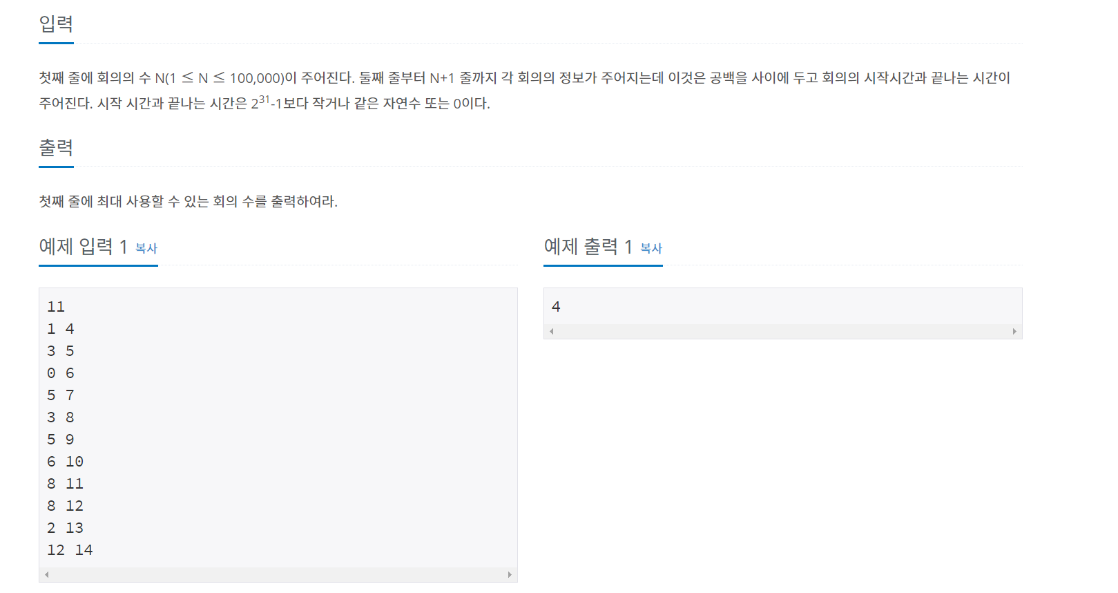 // cout << meeting[i].second << "\n"; //first가 끝나는시간, second가 시작시간