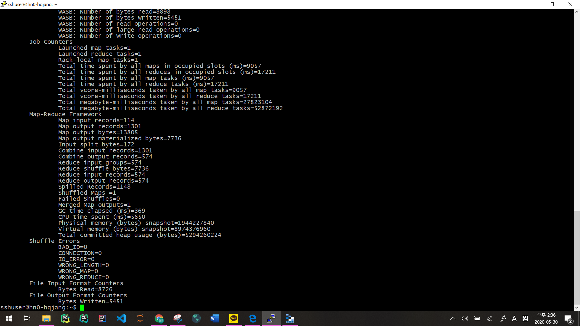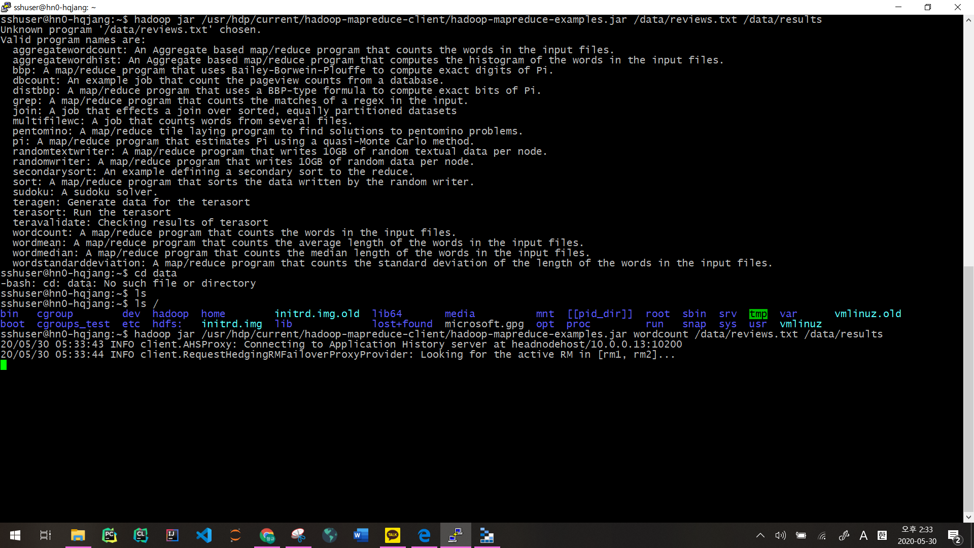어쨌든 읽을 텍스트 파일을 준비하고, 나는 Azure를 통해 미리 준비한 Hadoop cluster에 putty로 접속해보았다.